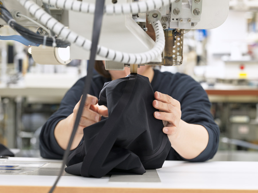 「パターンと縫製のせめぎ合いがありました。もっと縫いやすくパターンを変えることもできるんですが、それだと着用感が変わってしまい、Valorからかけ離れてしまう。現場の人たちから『これじゃ縫えない』と言われながら、『ではこれで何とか』と線を書き直す日々。正直みなさんとバチバチしたこともありますが(笑)、最終的にはベストな落とし所を見つけられました。(開発本部 商品研究部 パフォーマンスグループ:前田恵梨子さん )」