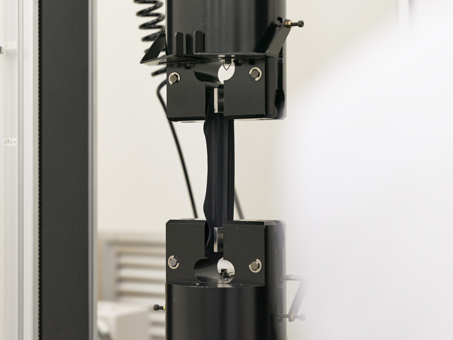 生地が伸び縮みした際の応力特性を計測するための試験。